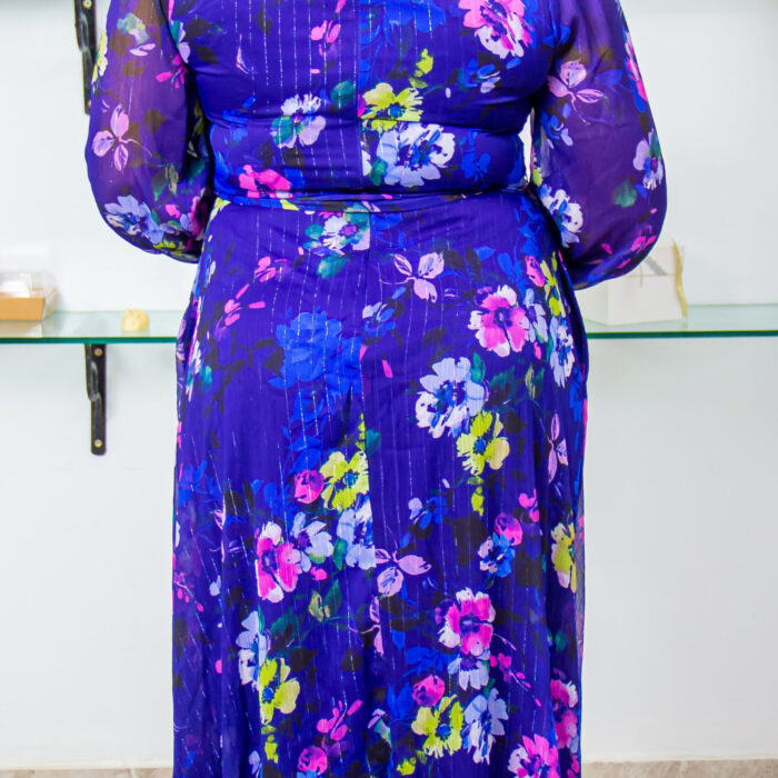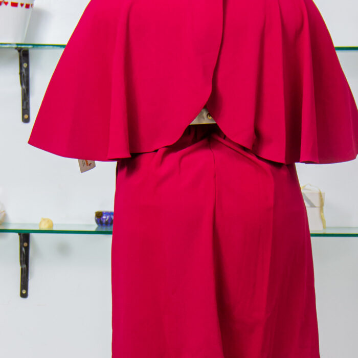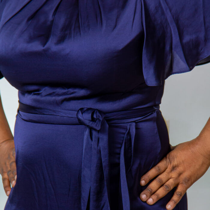 JAX ZINNIA COLOR SPLASH BANDAGE CAP SLEEVES SATIN DRESS WITH DIP NECKLINE
