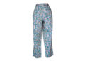 | Green, white, lilac, brown geo-print on navy blue ankle trouser with inner side pockets |