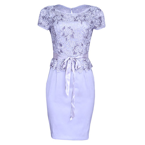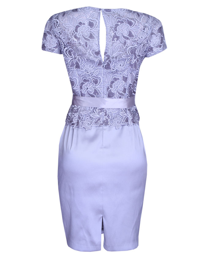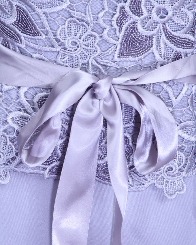 LAVENDER PAN SEAMED RUFFLE CHIFON SKATERED DRESS WITH SATIN RIBBON BELT &INNER SATIN SPAG SLVLESS DRESS