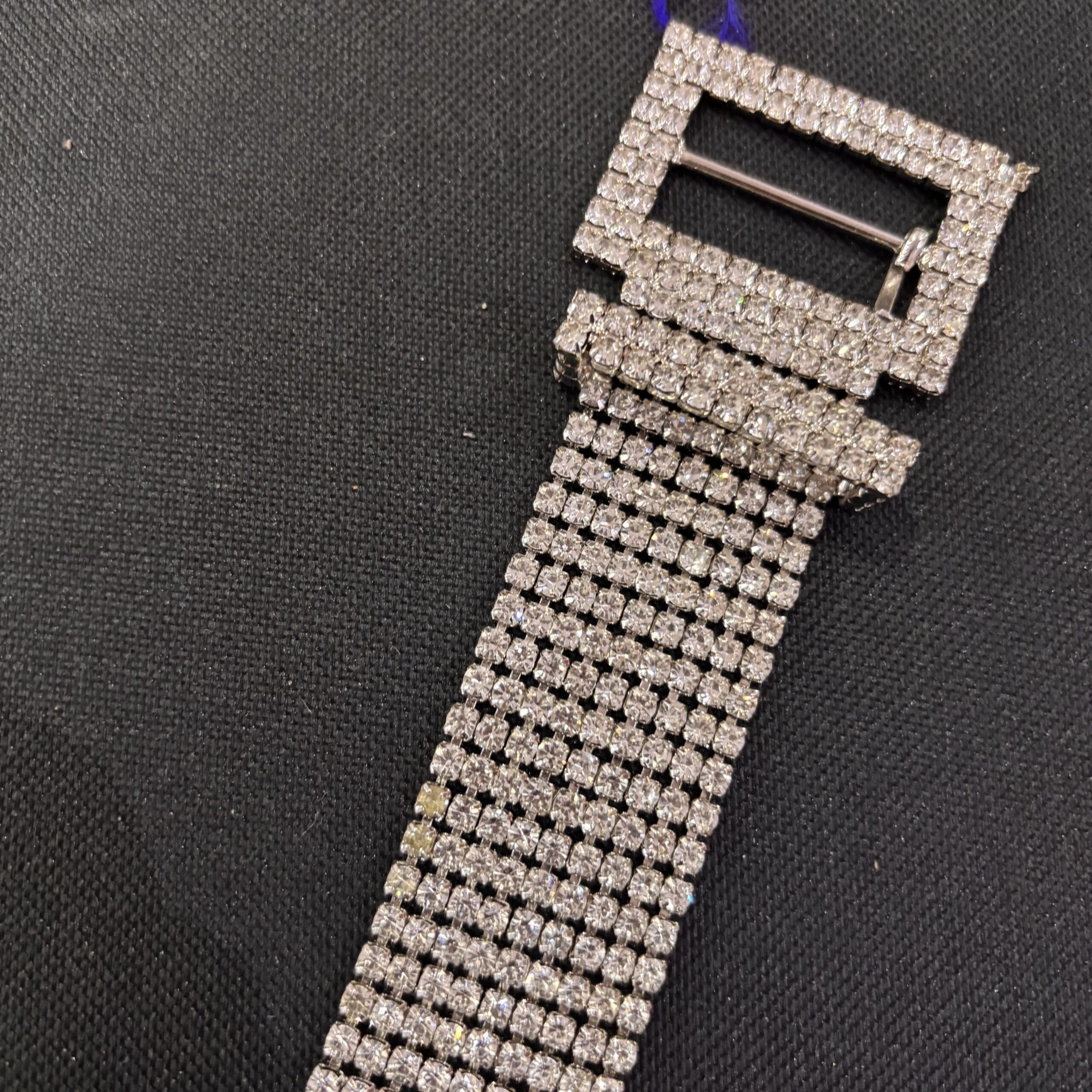 AKIRA SILVER WITH WHITE STONE STUDDED BELT BRACELET