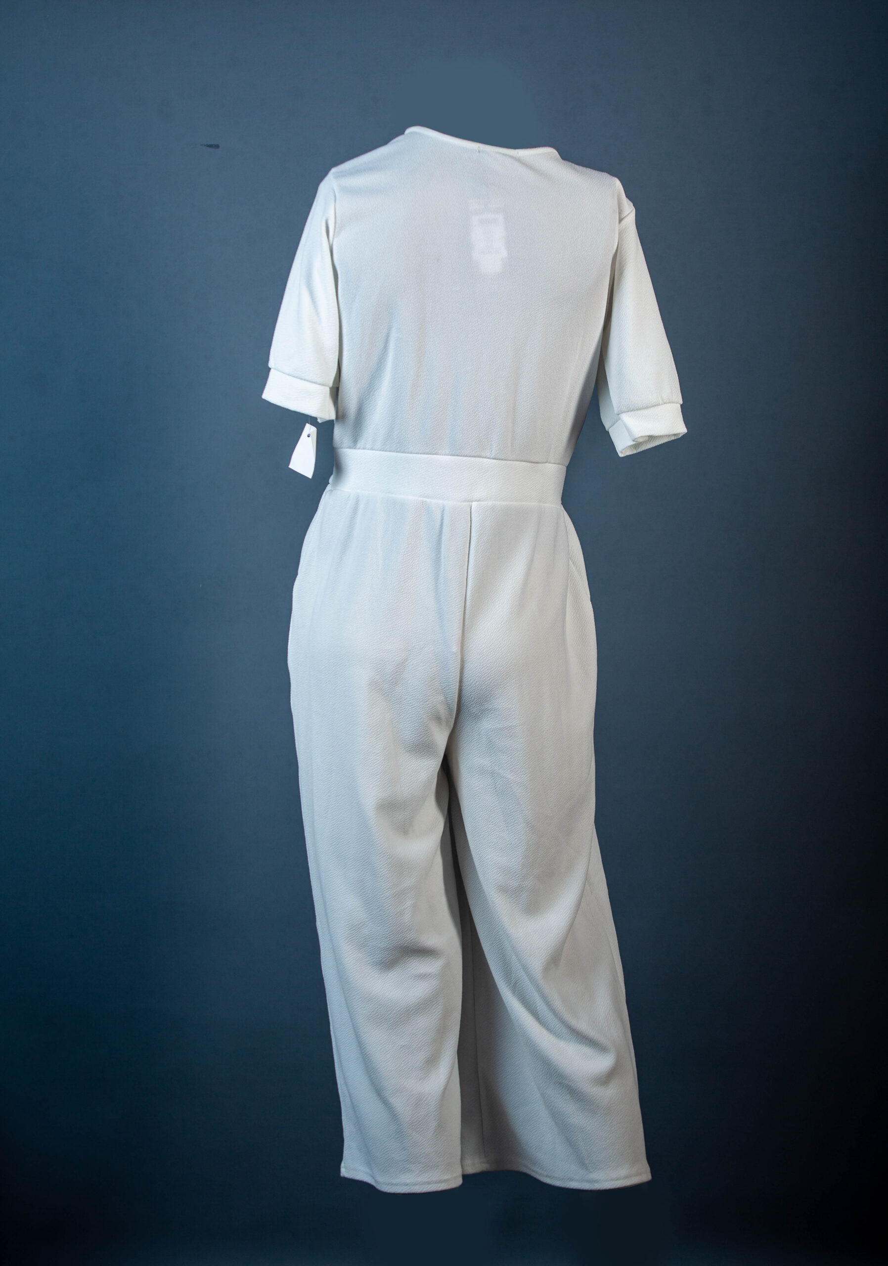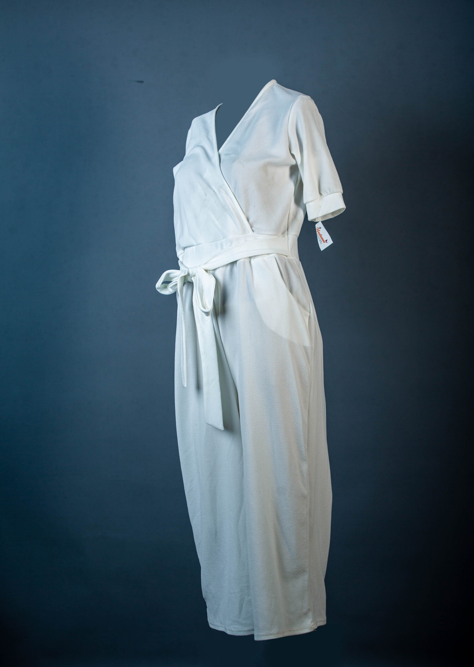 BOOHOO WHITE 3/4 JUMPSUIT WITH MATCHING SASH
