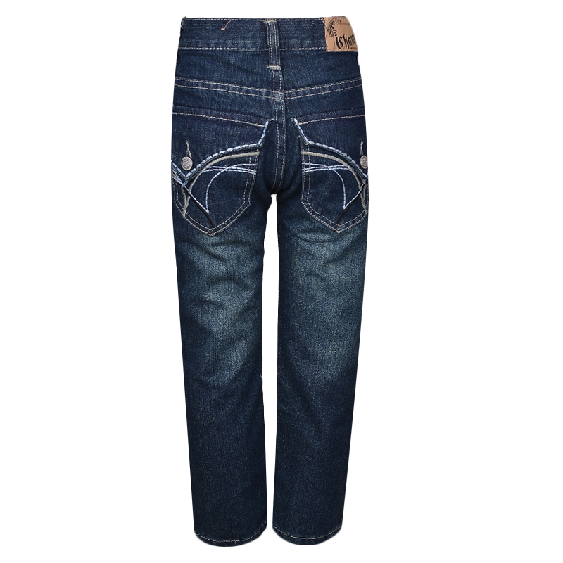CHAMS BLUE DENIM JEANS WITH FADED HIPS AND BLUE THREAD DETAILS