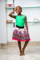 GREEN SHORTSLEEVE TANK TOP WITH WHITE/YEL/BLUE EMBRIODERY NECKLINE