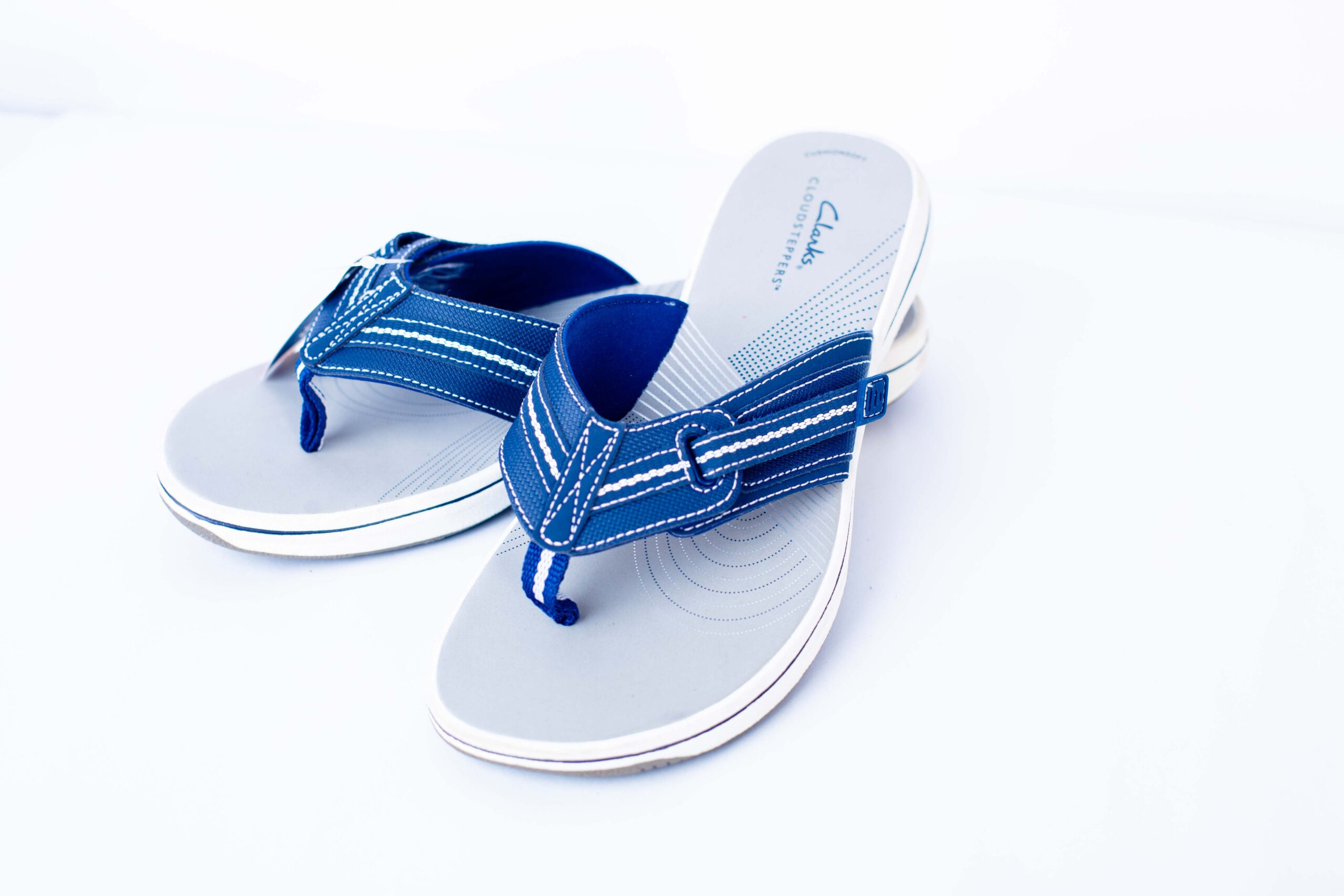 CLARKS BLUE WITH WHITE DETAIL THREADING FAUX LEATHER MALE SLIPPERS