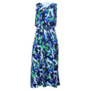 MINT//BLUE/WHITE/BLACK COLOUR SPLASH LONG HI-LO DRESS WITH BELT&V OPEN NECK
