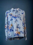 DOROTHY PERKINS GREY WITH BLUE/PINK FLORAL TOP WITH TINY BUST FRILLS