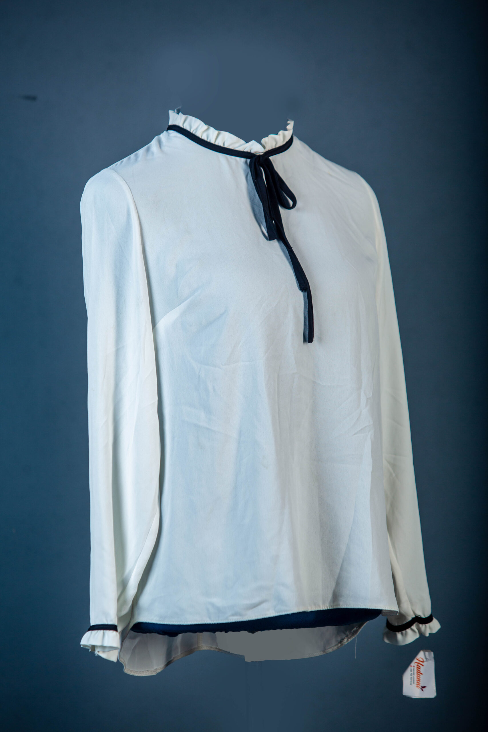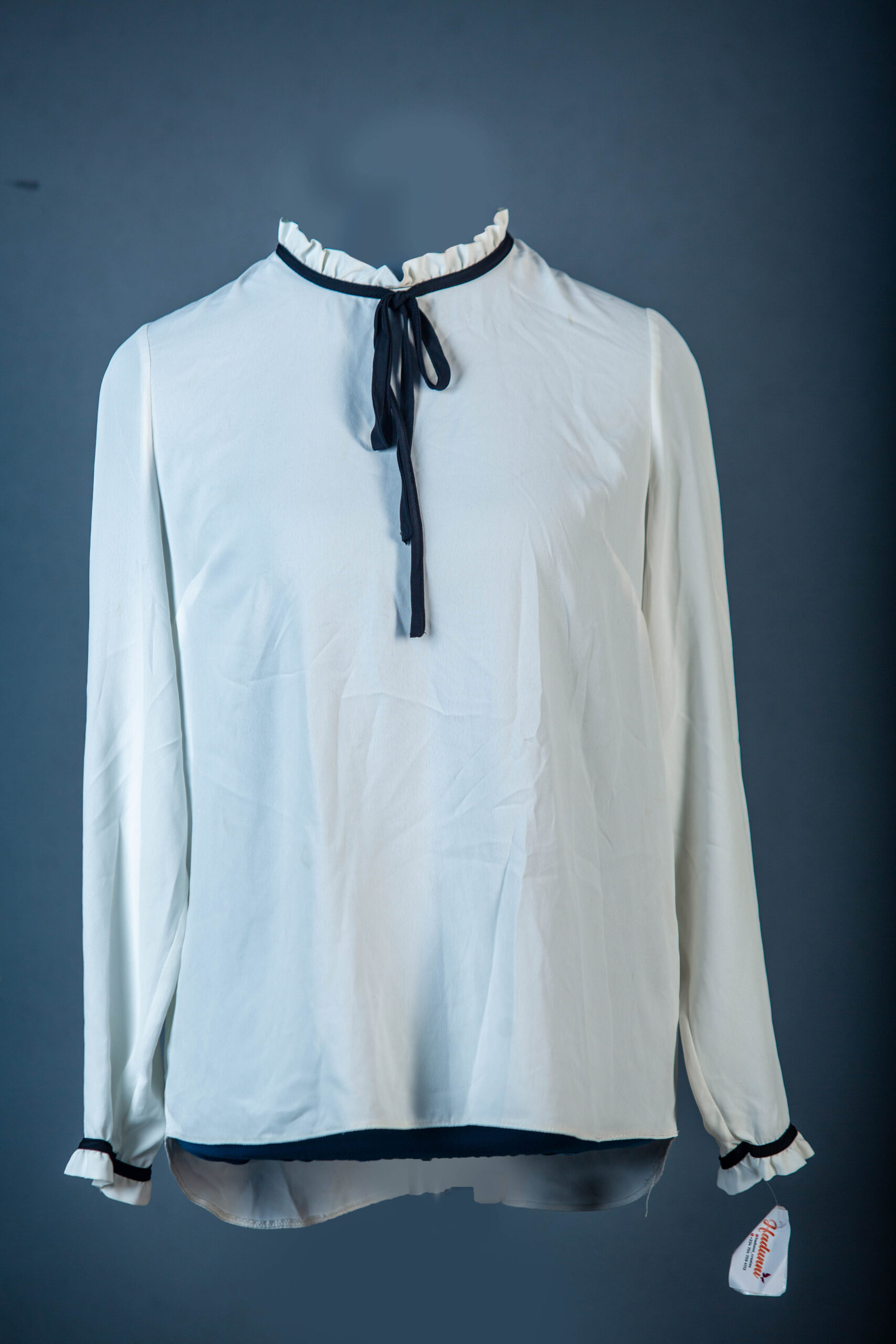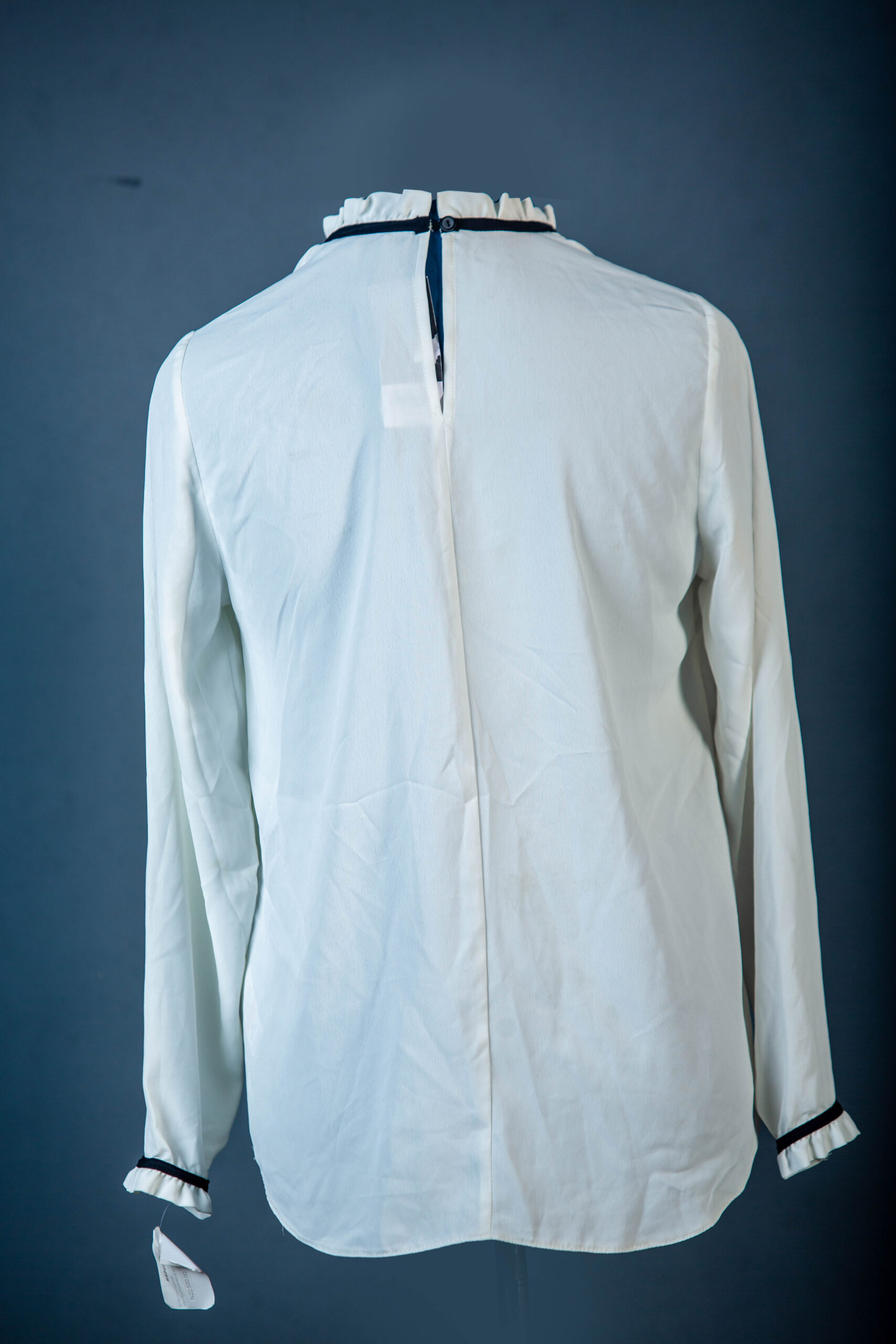 DOROTHY PERKINS WHITE LONGSLEEVE WITH BISHOP COLLAR WITH BLACK STRAP TIE NECK TOP