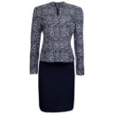 TAN/BLK GEOPRINT COLLARLESS LONGSLV JACKET WITH OVERLAP FRONT &PRESS BOTTON & GOLD METAL WAIST DESIGN