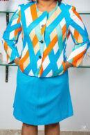 ORANGE/BLUE/WHITE MULTI LONGSLEEVE JACKET & BLUE FLARED MIDI SKIRT
