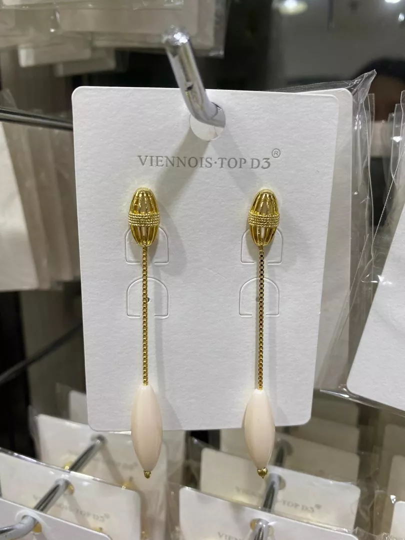 Be the first to review “jpg7CREAM OVAL PLASTIC ON GOLD CHAIN EARRING”