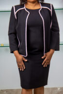 BLACK TUTU WITH PINK TAPING COLLARLESS OPEN LONGSLEEVE JACKET WITH BLACK DRESS