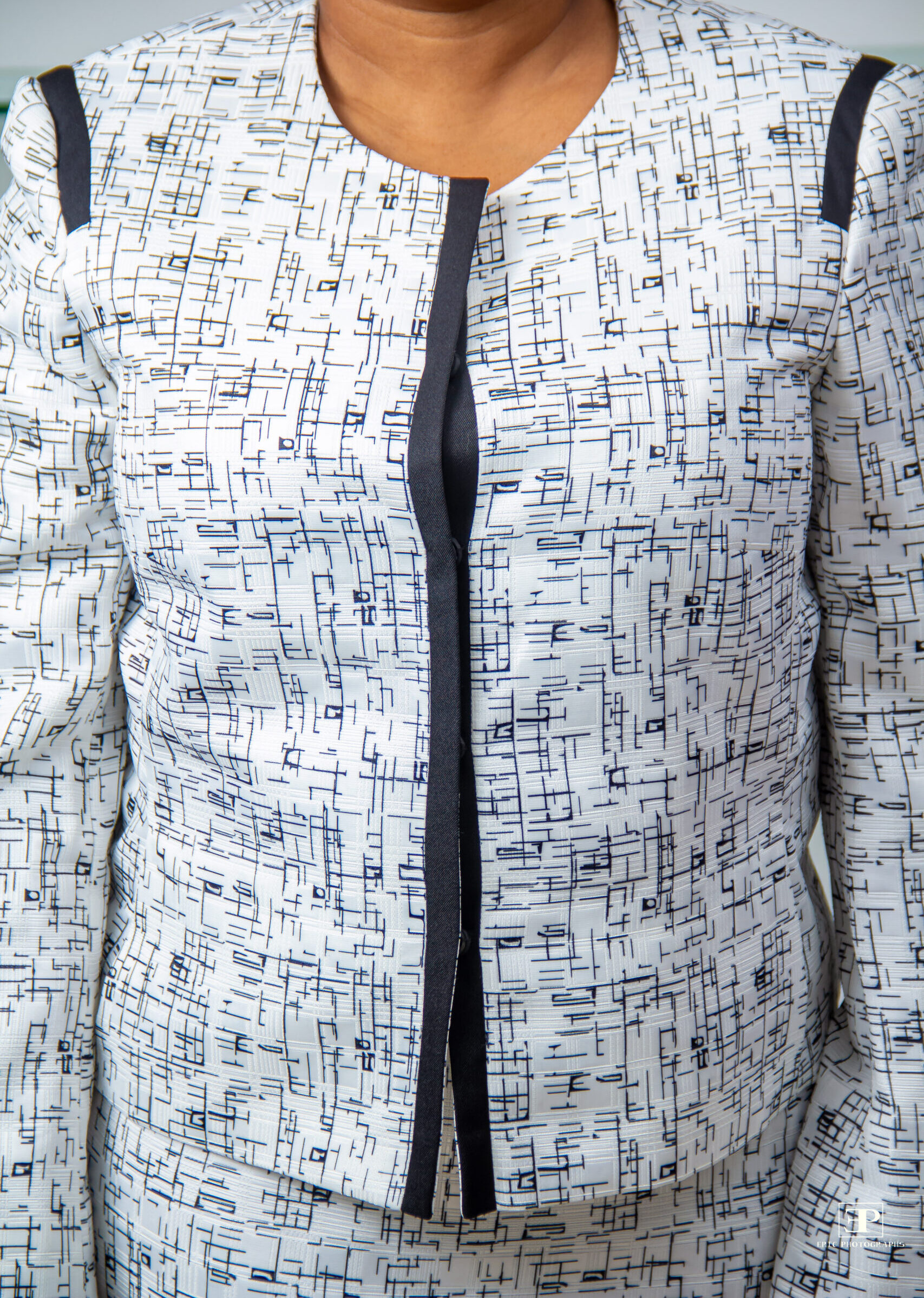 BLACK&WHITE COLLARLESS LONGSLEEVE JACKET WITH 2 BOTTON FRONT