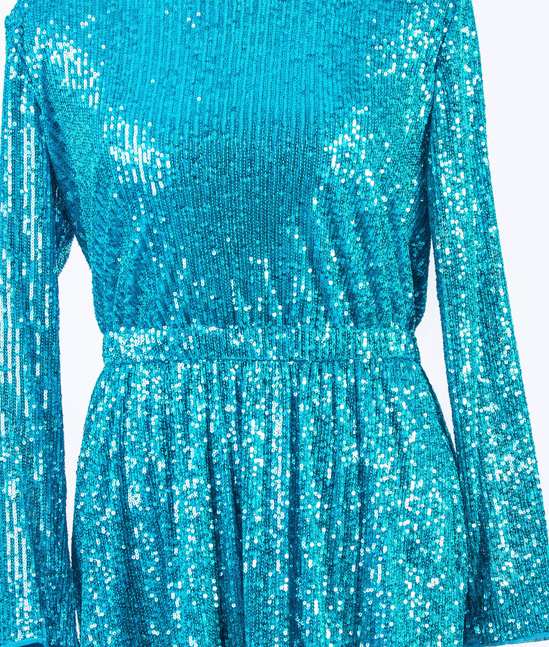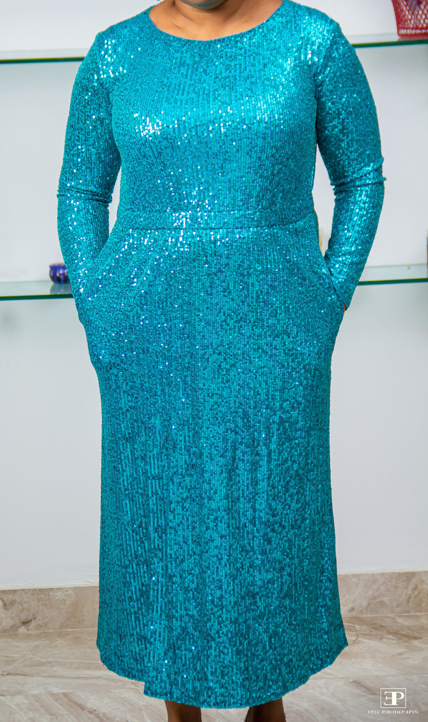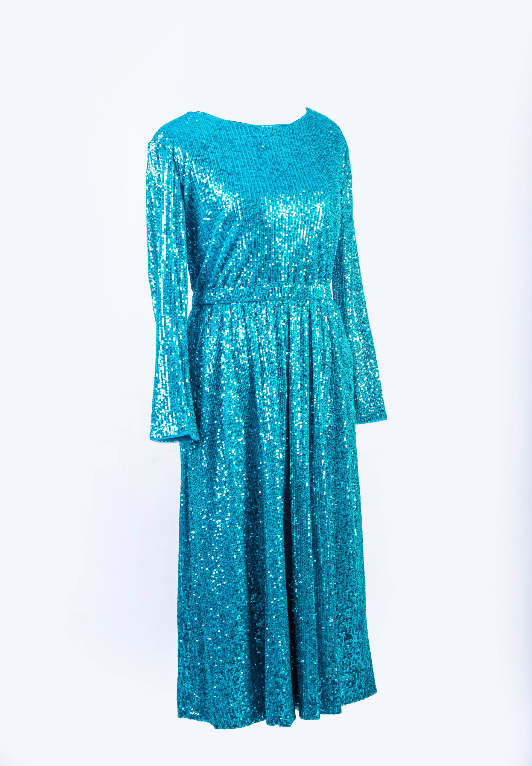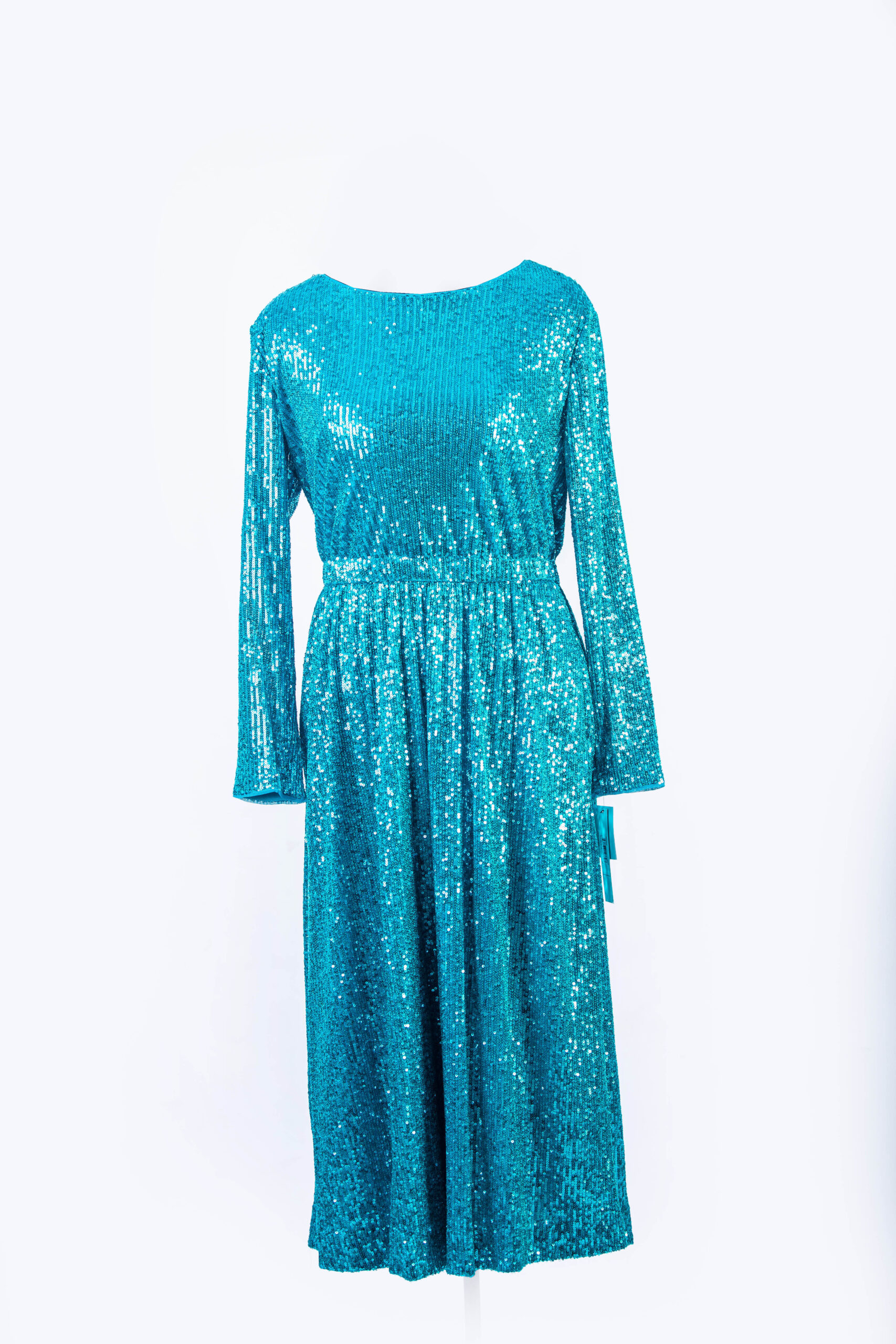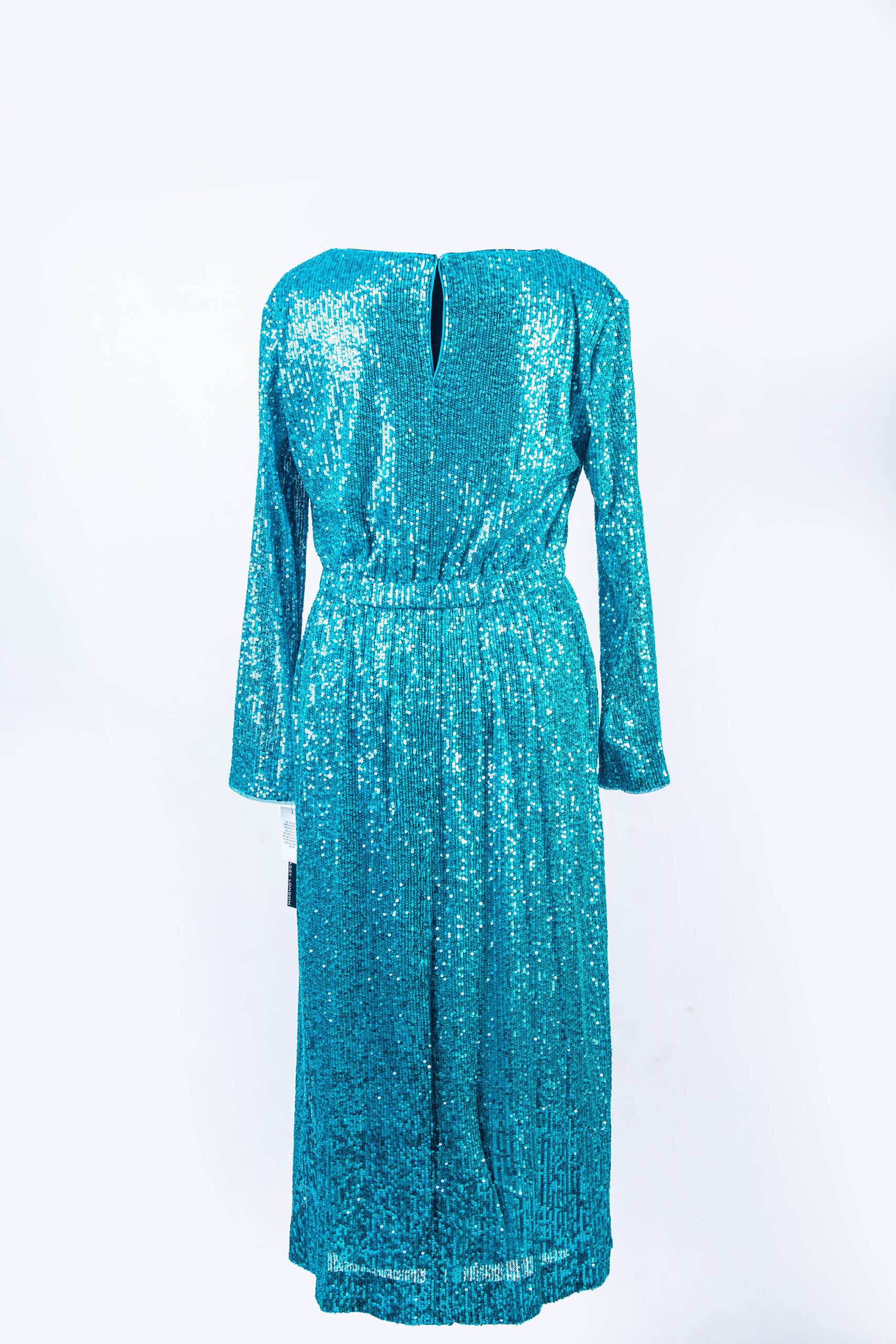 OCEAN BLUE SEQUENCED L/S MIDI EVENING DRESS