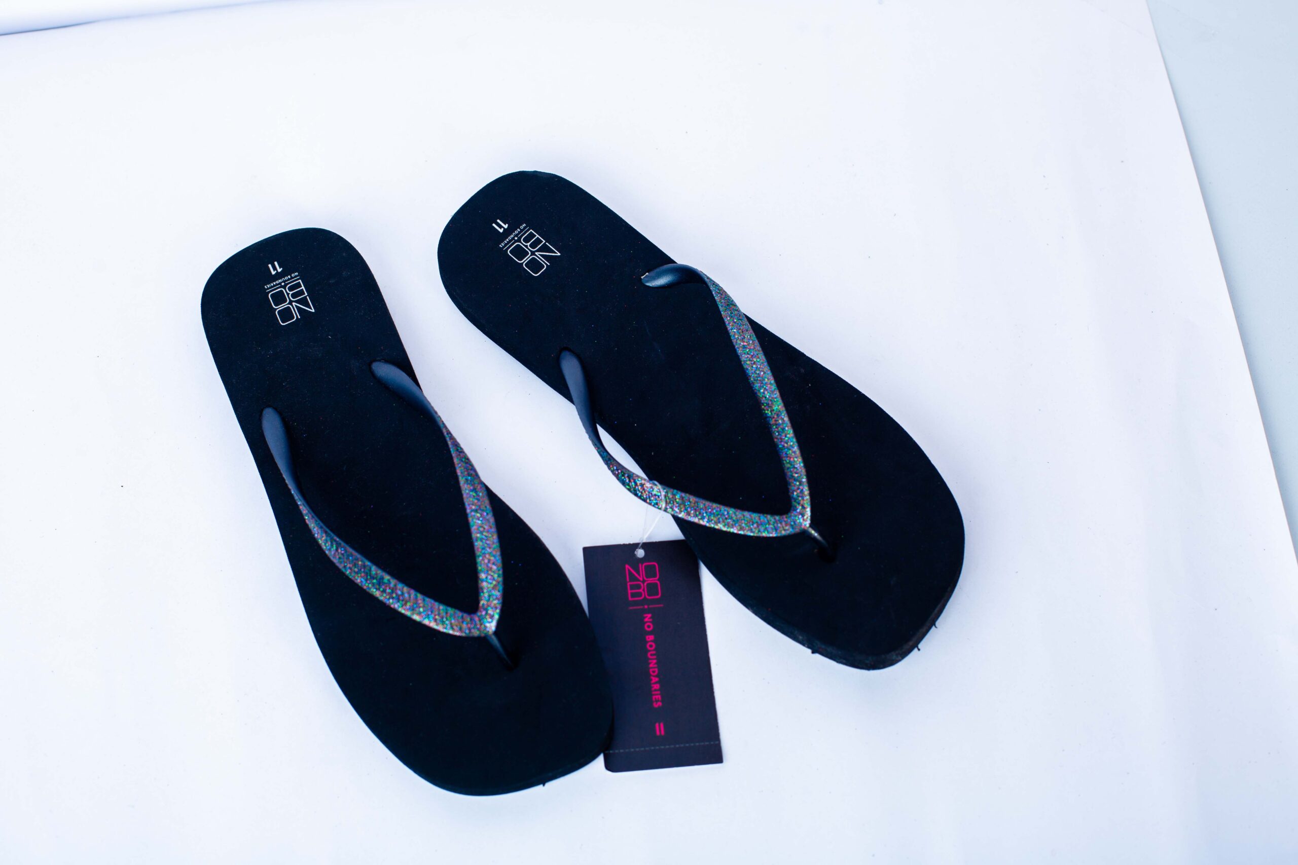 NO BOUNDARIES BLACK FLIP FLOP WITH TRANSPARENT STRAPS WITH SHIMMER