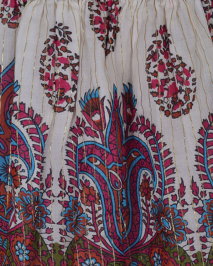CREAM WITH TEAL/ORANGE/PINK MOSIAC DETAIL & GOLD STREAK LINES WITH BLACK ELASTIC WAIST