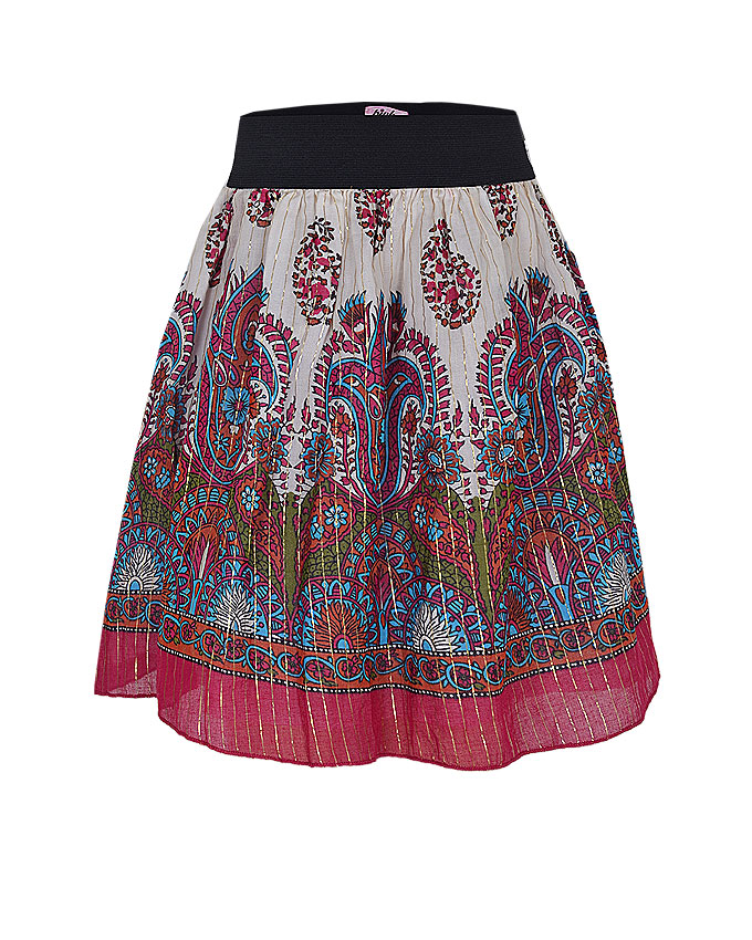 PINK ANGEL CREAM/TEAL/ORANGE/PINK MOSIAC WITH BLACK BAND SKIRT