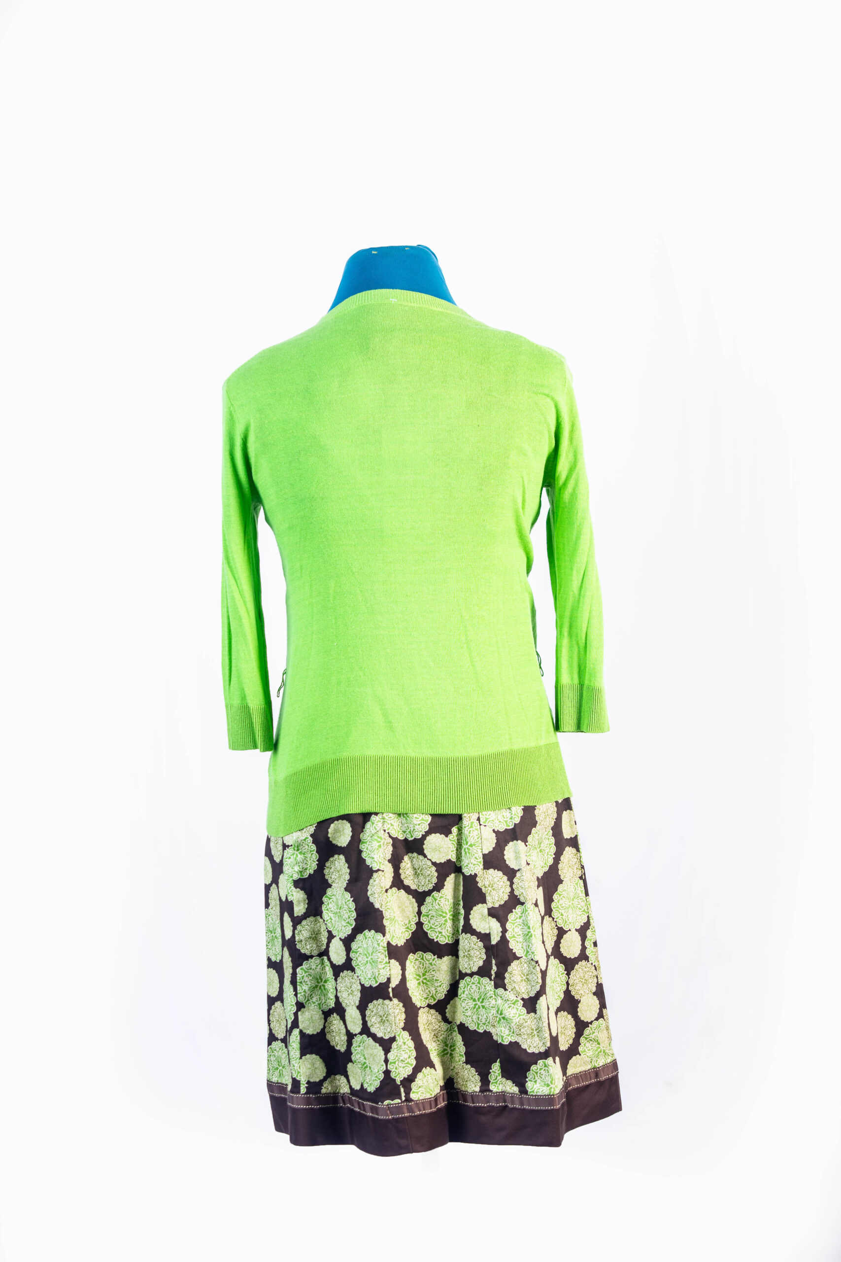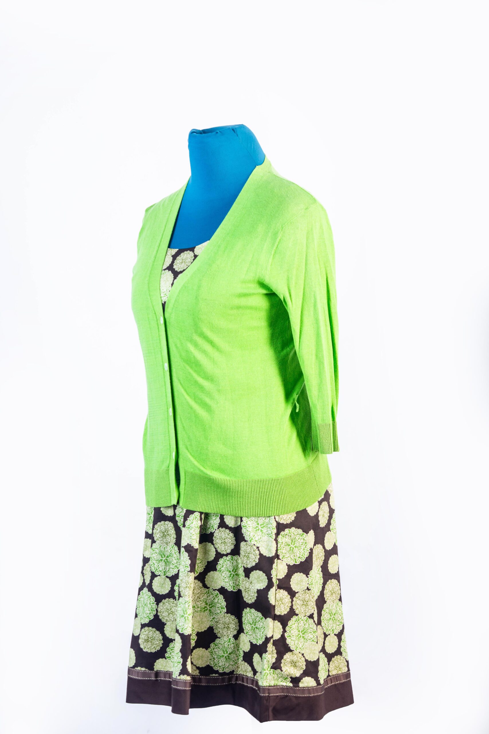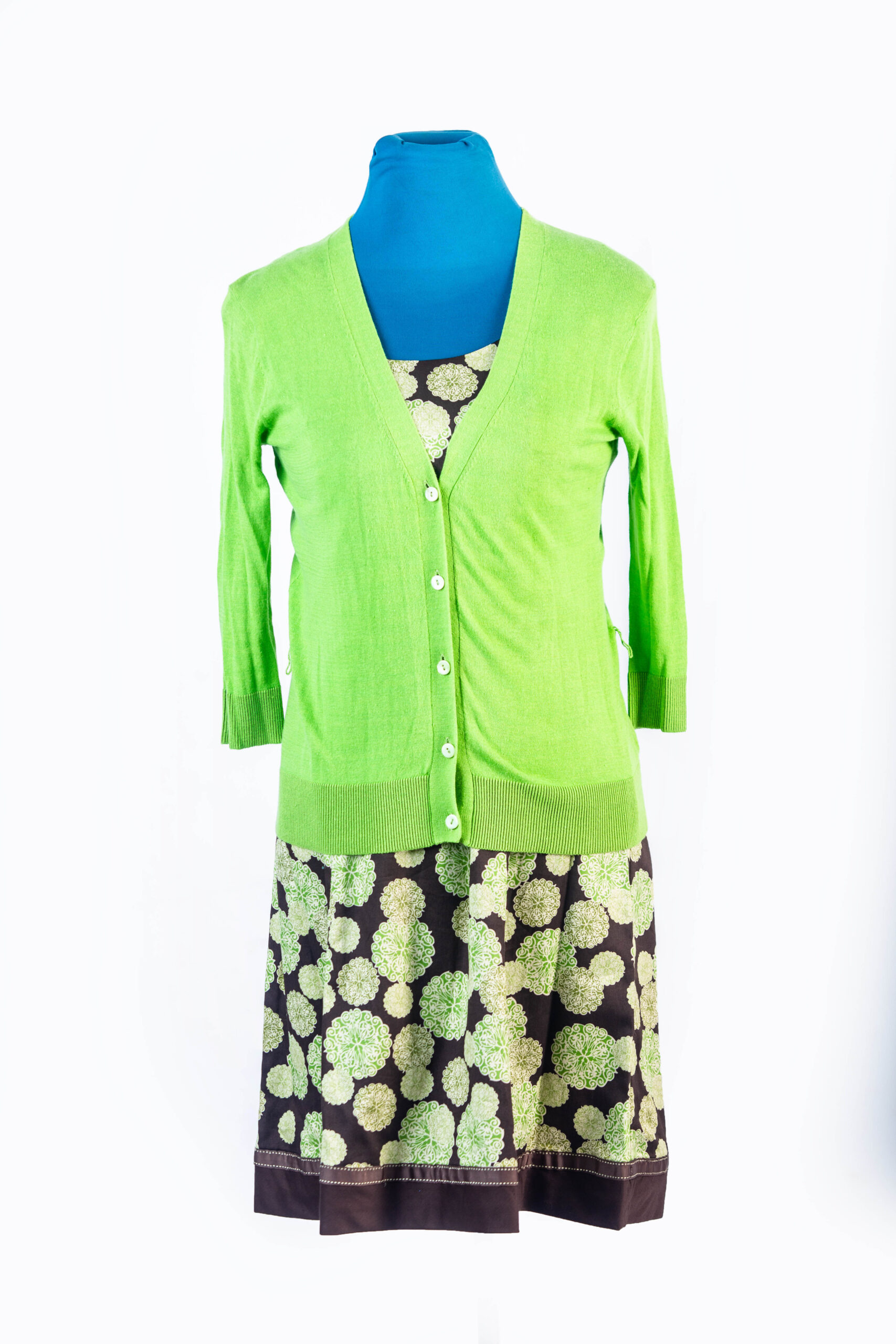 SIGNATURE BY ROBBIE CHOCOLATE/AVOCADO MIDI SLEEVELESS DRESS WITH GREEN CARDIGAN